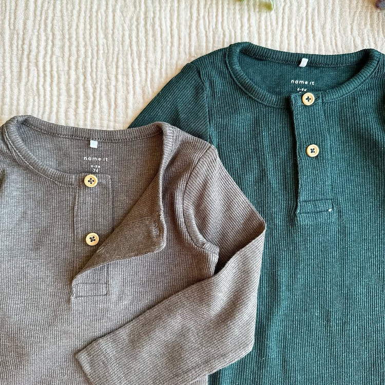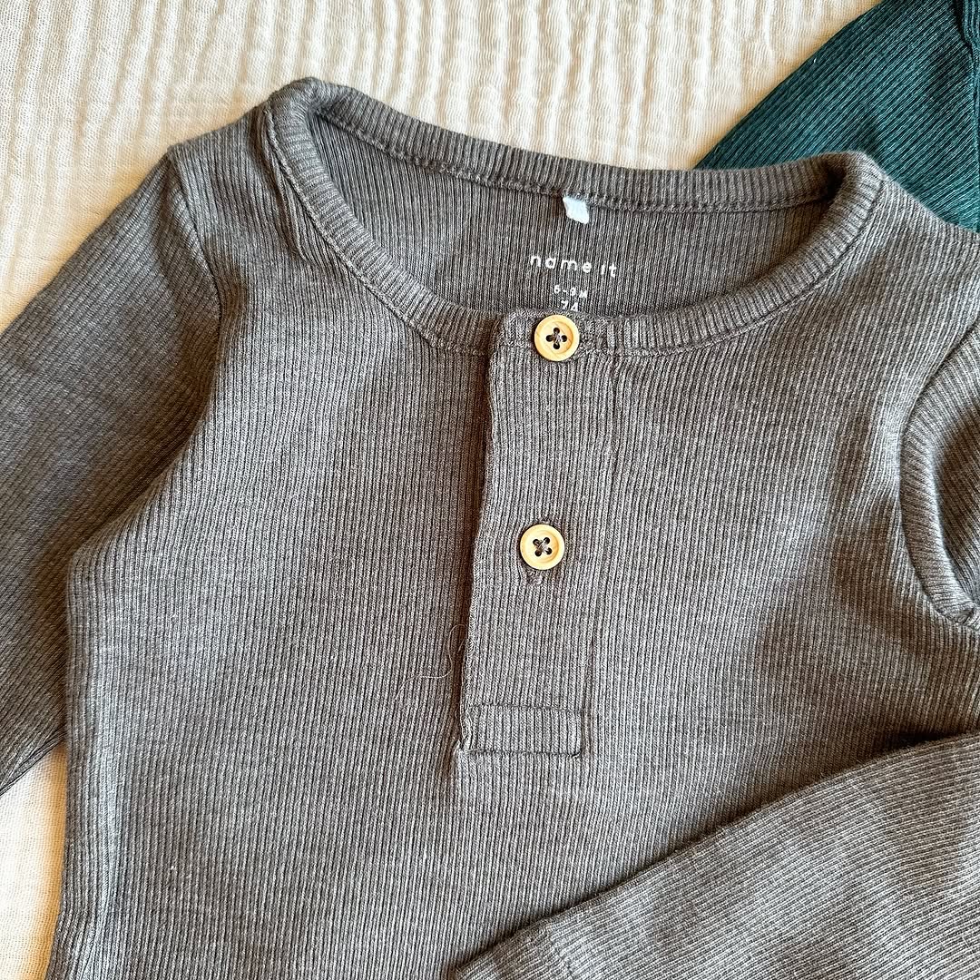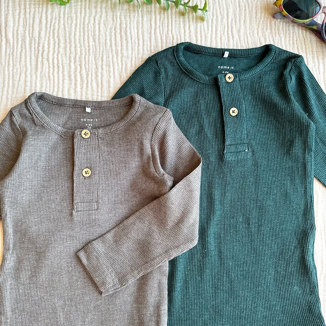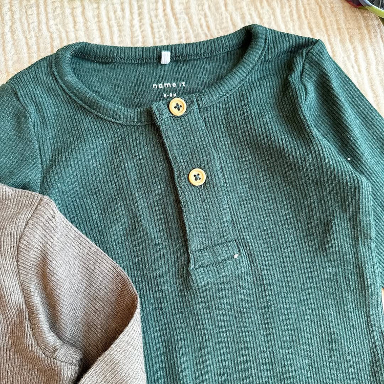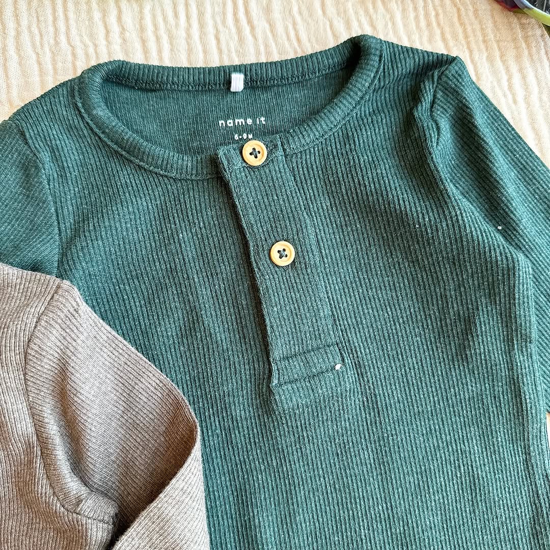 بادی های اسلیم فیت آستین بلند یشمی و قهوه ای خاکستری برند name it
